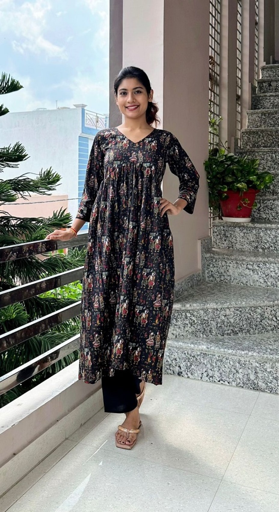 FIGURE PRINT BLACK ALIA CUT KURTI