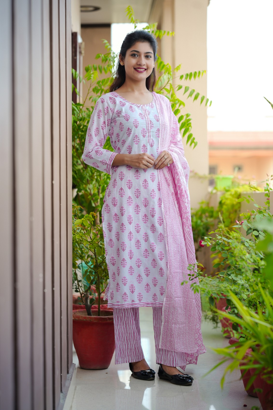COLOUR : WHITE BASE WITH PINK BLOCKS