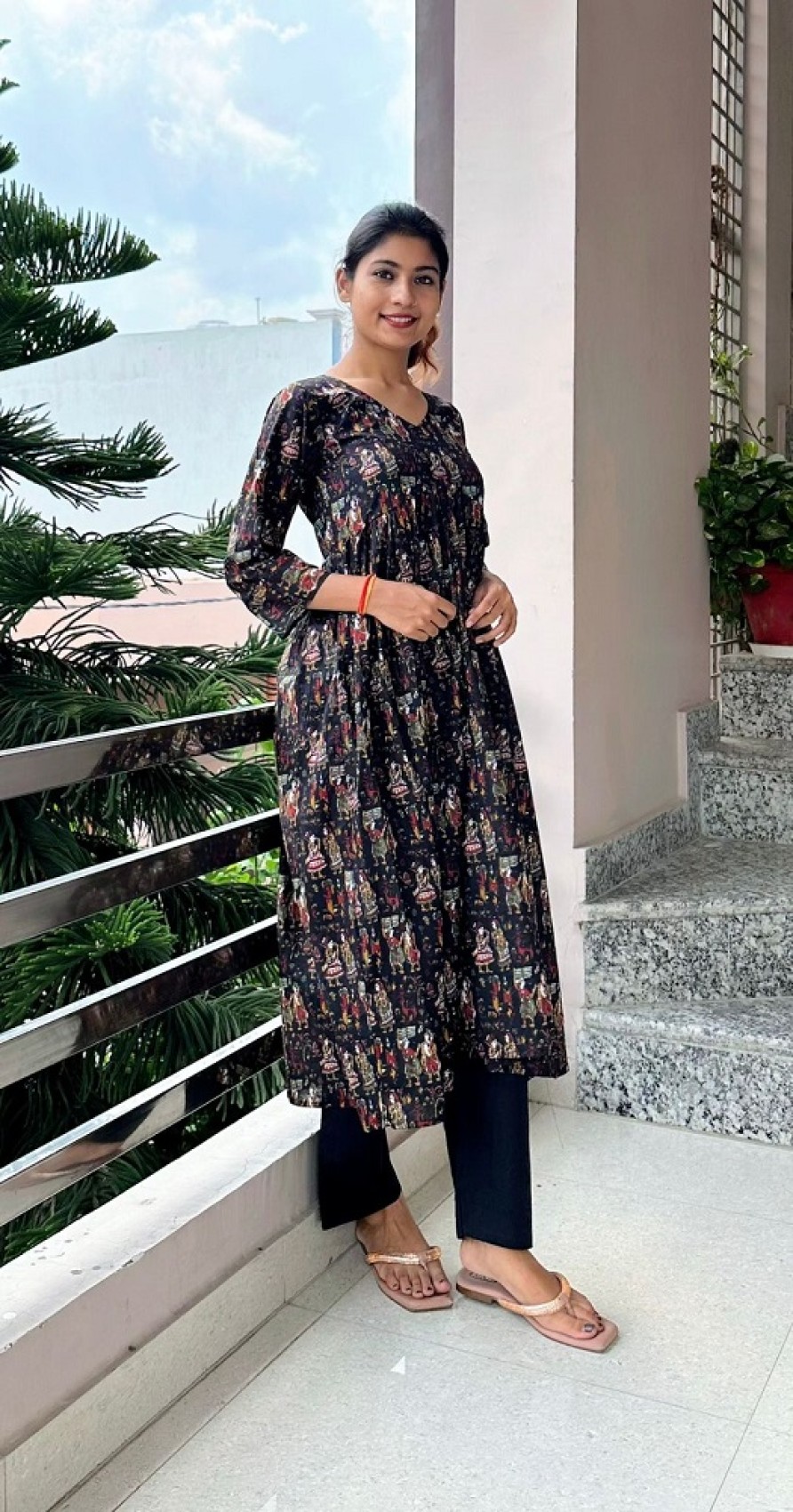 FIGURE PRINT BLACK ALIA CUT KURTI